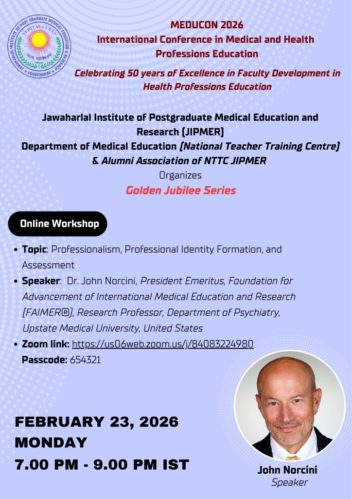 FEBRUARY 23, 2026 MONDAY 7.00 PM - 9.00 PM IST MEDUCON 2026 International Conference in Medical and Health Professions Education Celebrating 50 years of Excellence in Faculty Development in Health Professions Education